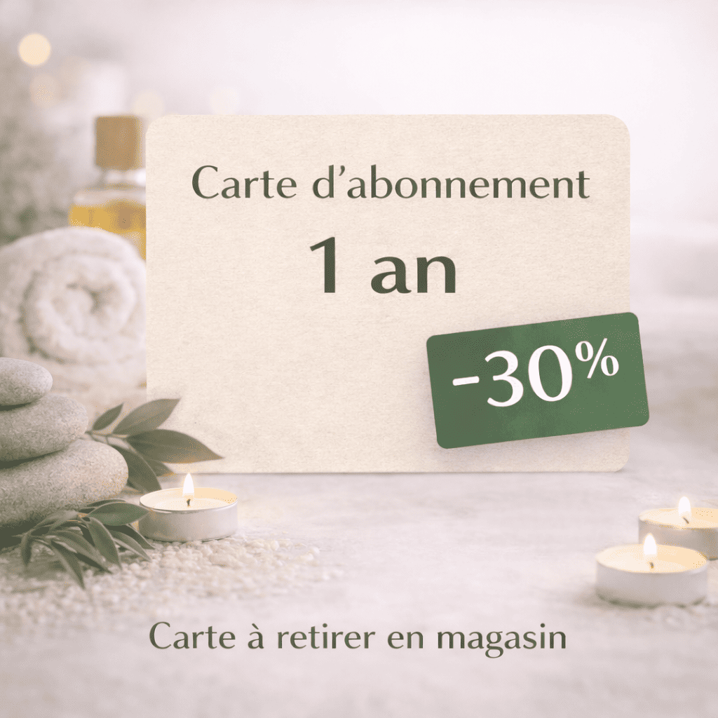 Carte a retirer en magasin. Avantage = -15 % sur tous les soins et prestations
